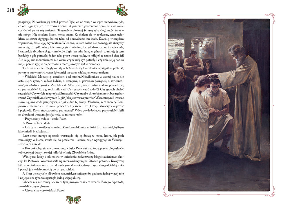 Cholernie warto. Powieść ta nie zanudzi was długimi i nużącymi opisami, lecz zabierze do brutalnego świata przesyconego przemocą, alkoholem i orgiami. Sienkiewicz wspaniale oddał realia Rzymu za czasów panowania okrutnego Nerona (...) Zajmijmy się jednak tym konkretnym wydaniem, które dziś chciałam wam pokazać. Zaopatrzone zostało w przepiękne ilustracje autorstwa Piotra Stachiewicza, które powstały - uwaga! - w latach 1896-1902. Mimo to mają w sobie nutkę nowoczesności, są też niebywale wręcz dokładne. Okrutnie się cieszę, że wydawnictwo zdecydowało się na umieszczenie tak "sędziwych" obrazów, ponieważ podkreśla to tylko klimat całej powieści.