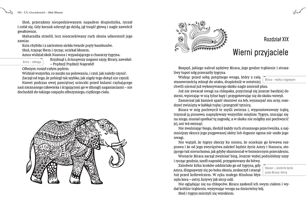 Wydanie Słonia Birary kompletne bez skrótów i cięć w treści. W tym wydaniu znajdziesz odpowiedzi na pytania z podręcznika - „pewniak na teście”, czyli wskazanie zagadnień, które zwykle pojawiają się w pytaniach z danej lektury we wszelkich testach sprawdzających wiedzę, a także w podręcznikach i na klasówkach. Książka zawiera pełen tekst lektury. Na końcu książki zamieszczono opracowanie, w którym znajduje się bardzo szczegółowe streszczenie oraz drugie skrócone, ułatwiające szybkie przygotowanie się przed lekcją. Opracowanie zawiera ponadto plan wydarzeń, wnikliwie wyjaśnioną problematykę oraz szerokie charakterystyki bohaterów.