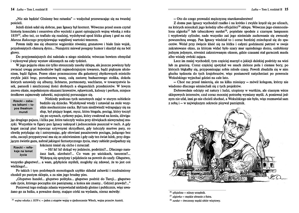 Wydanie Lalki kompletne bez skrótów i cięć w treści. W tym wydaniu znajdziesz odpowiedzi na pytania z podręcznika - „pewniak na teście”, czyli wskazanie zagadnień, które zwykle pojawiają się w pytaniach z danej lektury we wszelkich testach sprawdzających wiedzę, a także w podręcznikach i na klasówkach. Książka zawiera pełen tekst lektury. Na końcu książki zamieszczono opracowanie, w którym znajduje się bardzo szczegółowe streszczenie oraz drugie skrócone, ułatwiające szybkie przygotowanie się przed lekcją. Opracowanie zawiera ponadto plan wydarzeń, wnikliwie wyjaśnioną problematykę oraz szerokie charakterystyki bohaterów.