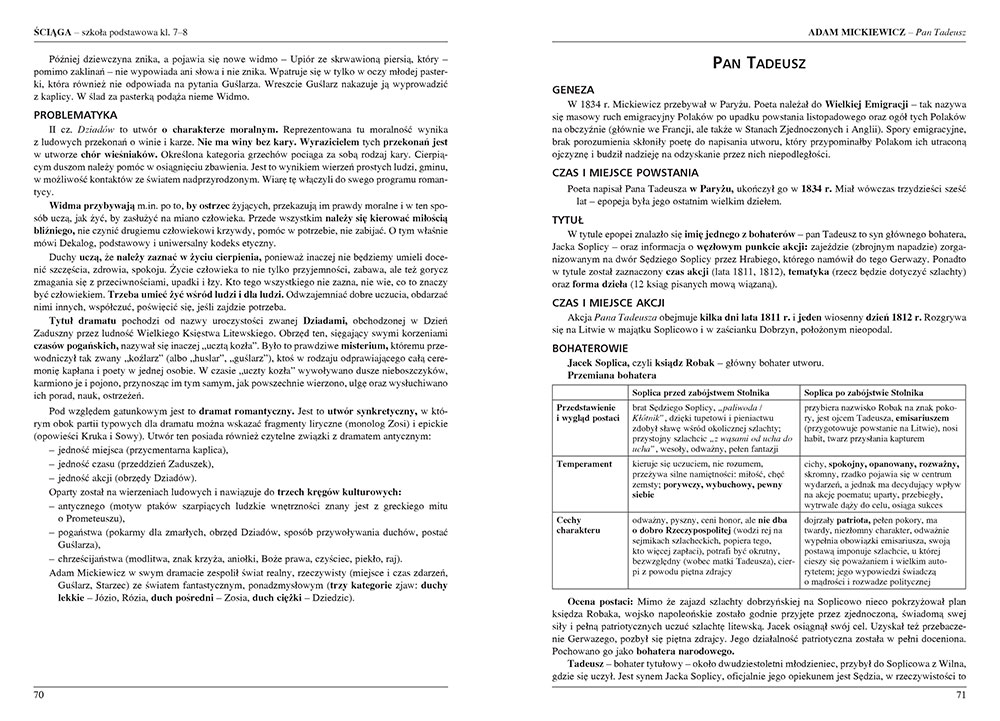 ¦ci±ga przeznaczona dla klas 7-8 zawiera opracowania wszystkich obowi±zkowych w tych dwóch latach nauki lektur i wierszy. Mo¿na tu znale¼æ biografiê autora, plan wydarzeñ, dok³adne charakterystyki bohaterów, szczegó³owe streszczenia i wyczerpuj±c± problematykê ka¿dego utworu, a w przypadku wierszy tak¿e omówienia ich budowy. Wszystko przedstawiono przystêpnym jêzykiem, który sprawia, ¿e praca z ksi±¿k± jest ³atwa i przyjemna.